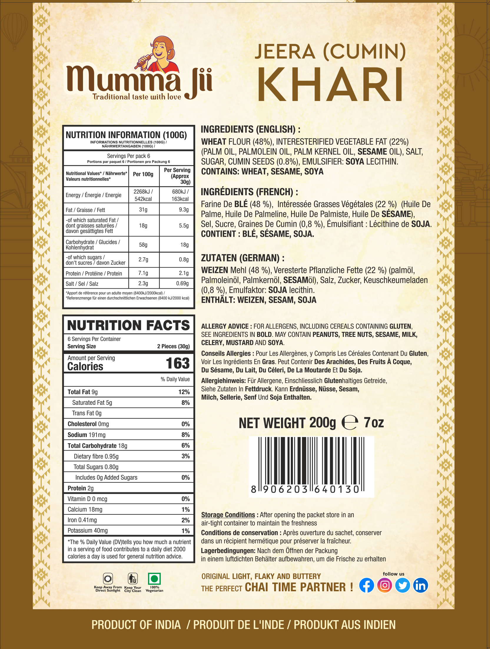 Infused with the warm, earthy flavour of cumin seeds, this crispy pastry delivers a burst of taste with every bite.
