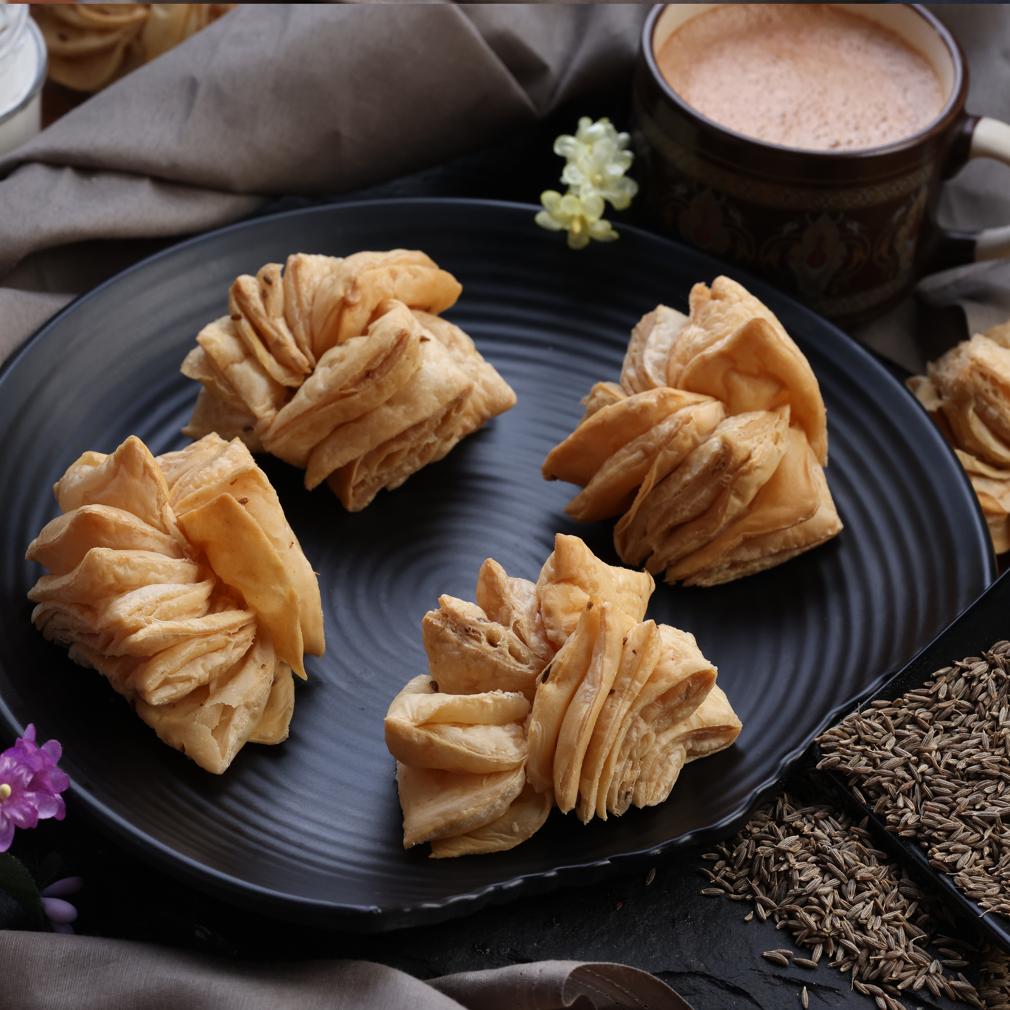 Infused with the aromatic essence of cumin seeds, this pastry offers a delightful blend of spices that elevates its taste to new heights.